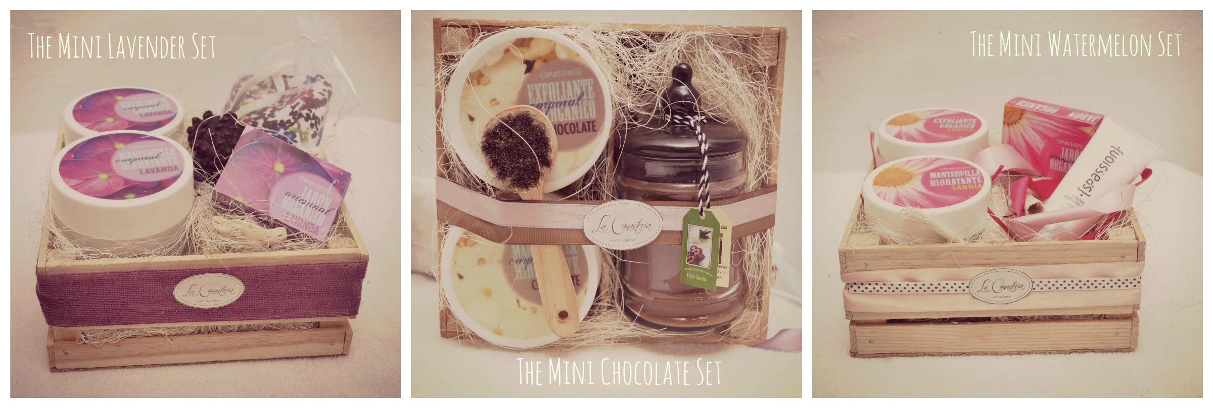 The Spassion Mini Sets son una alternativa de regalo perfecta en las cuales puedes escoger los productos y scent que prefieras. Tenemos velas de lujo, almohadillas faciales con hierbas naturales para uso frío y caliente y que ayudan con la descongestión nasal, relajación e hinchazón de ojos después de domir o llorar. Mantequillas corporales, exfoliantes, y cremas de manos de chocolate, yogurt, sandía, lavanda, coco, limón así cómo jabones orgánicos.