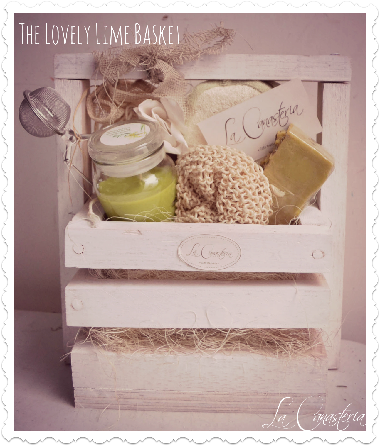 The Tea & Spa Basket: Lilly & Lime es una elegante canasta de regalo con una simpleza chic que encantará a mujeres clásicas con productos de spa y té de excelente calidad.