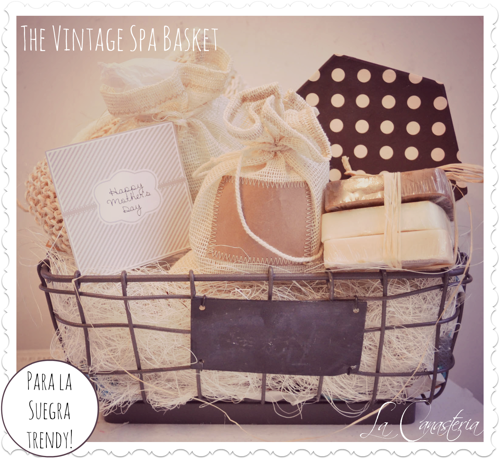 The Vintage Spa Basket es un gift basket sensacional con sorpresa de spa y a parte en una canasta de rejilla fina ideal para decorar al hogar!