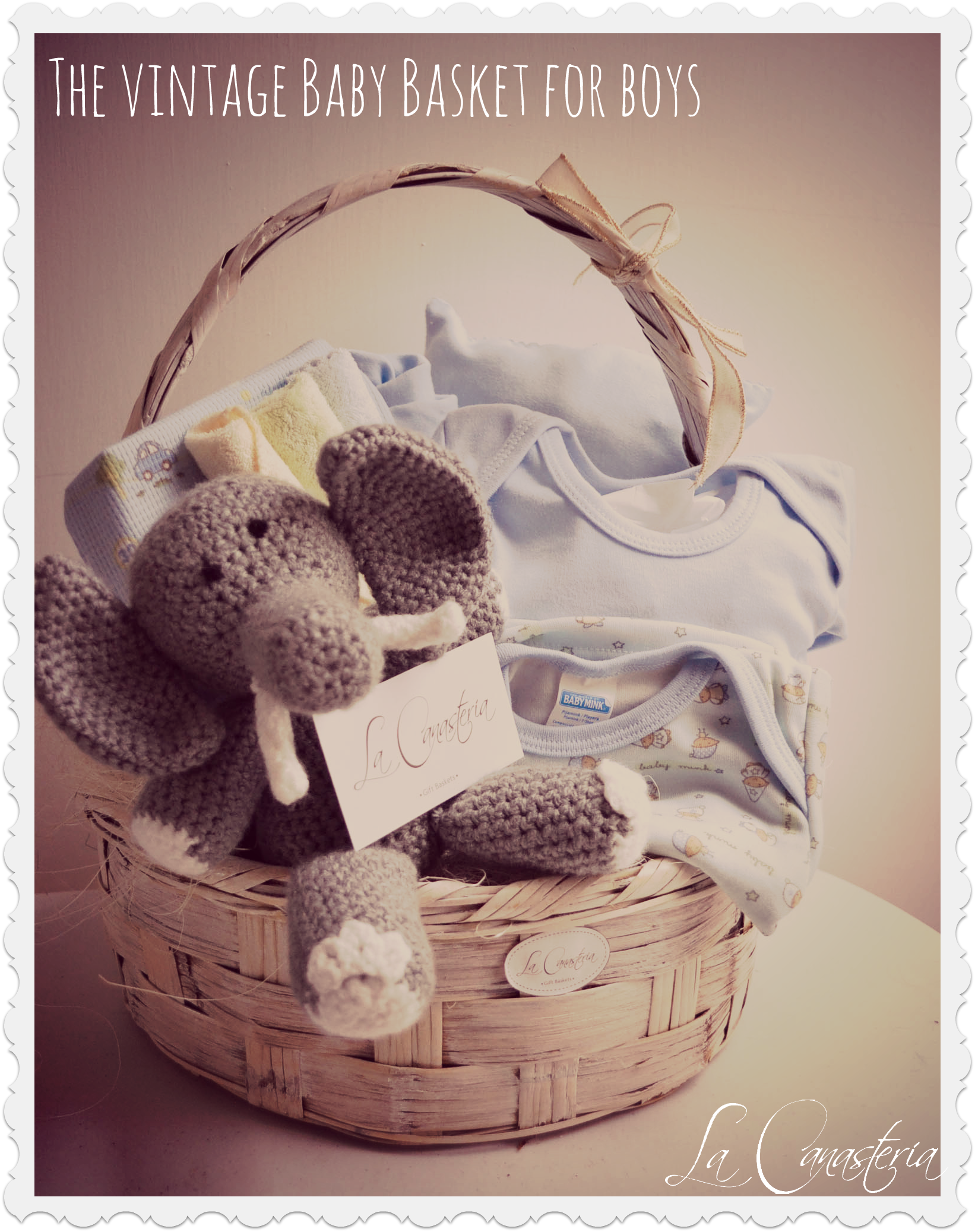 The Colorful Baby Basket For Boys es una canasta perfecta para dar bievenida a recién nacidos con tierna ropita para bebé y nuestro changuito vintage Momo!