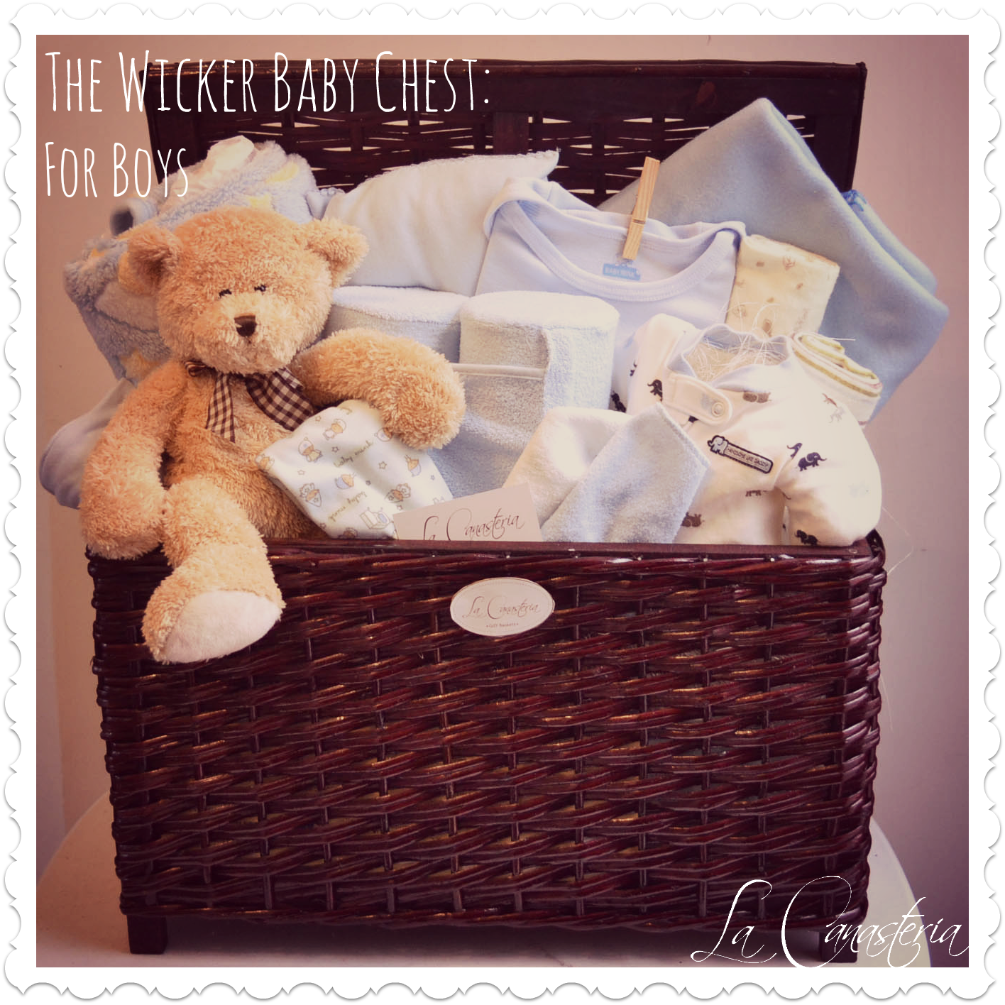 The Wicker Baby Chest for Boys es un espectacular regalo para recién nacidos en un elegante y clásico cofre de mimbre mexicano con sorpresitas para bebé!
