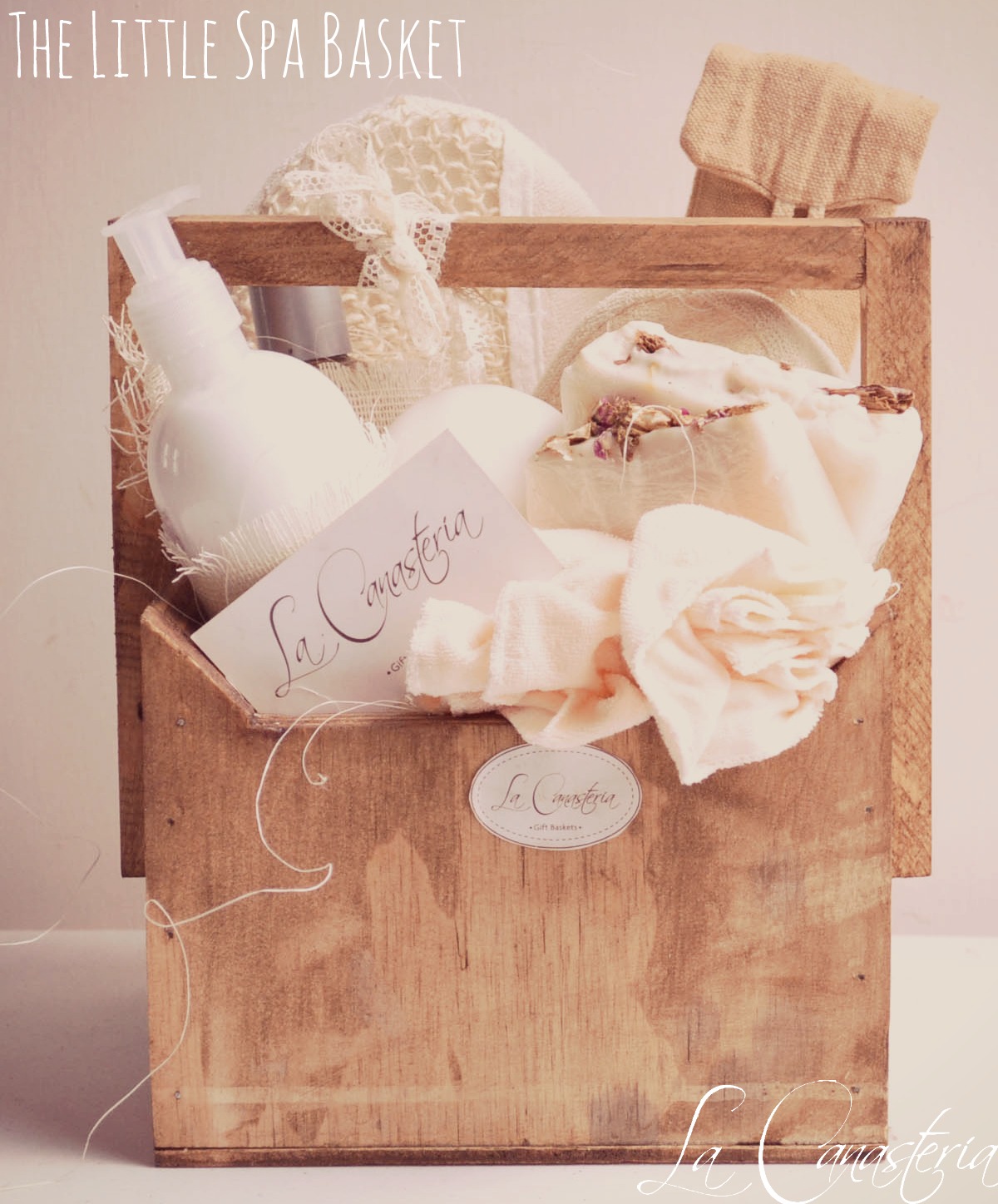 The Little Spa Basket  es una canastita artesanal de madera restaurada con un set delicioso de productos de belleza con toques shabby chic que transmite un sentimiento de confort y apapacho para mamá!