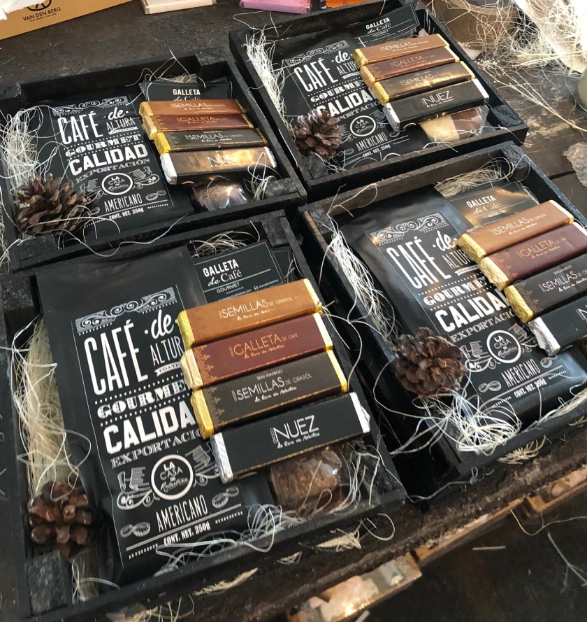 Nuestros Huacalitos de Café & Chocolate consisten en eso! Regalos Corporativos 100% Mexicanos que son cajas de regalo con Café Gourmet y creaciones de chocolate de Veracruz. Incluye también deliciosas galletas de café artesanal y barritas con chocolate de leche con ingredientes mixtos. Por ejemplo: Nueces, semillas de temporada y más!