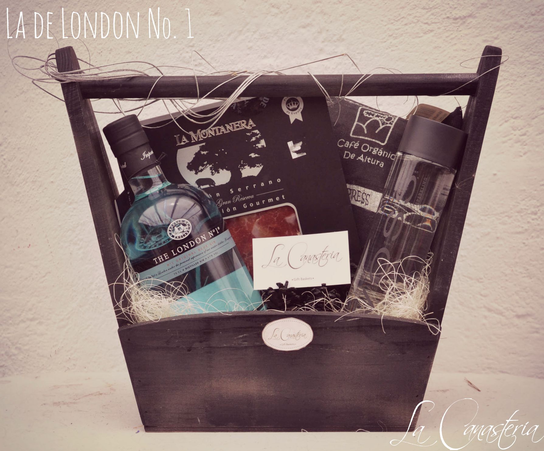 La de London No. 1 es una canasta diseñada para amantes del Gin o Ginebra con una de las marcas favoritas del mundo: London No. 1. Incluye un sobre de jamón serrano delicioso, kilo de café espresso orgánico de Chiapas, y elegante Agua de Voss en una canasta de madera boutique perfecta para uso posterior en casa.
